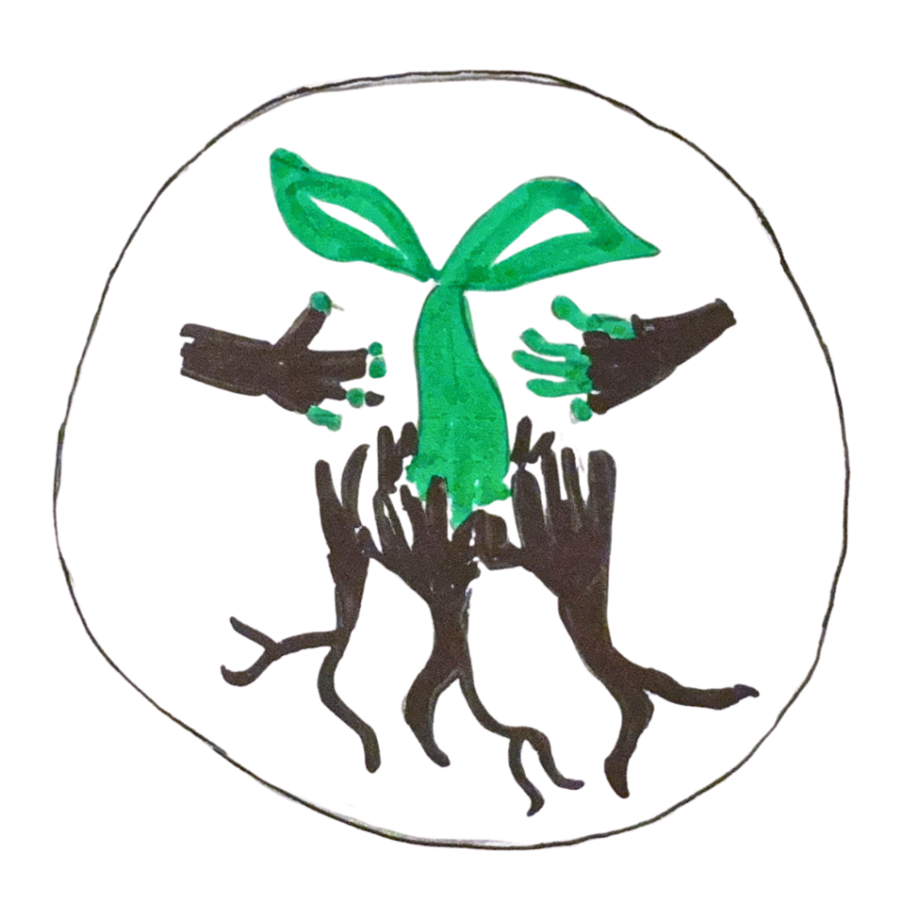 “My design reflects this year’s theme because you can see the collaboration of many hands that are roots, creating a sprout. This sprout, grown by the hands, also changes other people, as seen by the fingers changing color.”